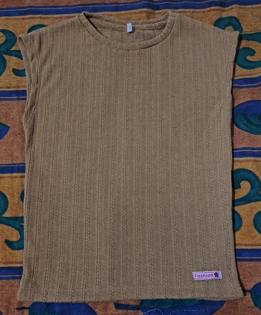 Musculosa de color marrón súper canchera con detalles de ribetes verticales que le dan un toque único 💪✨. Tiene un corte clásico y un cuello redondo que te hará sentir cómodo todo el día 😎.