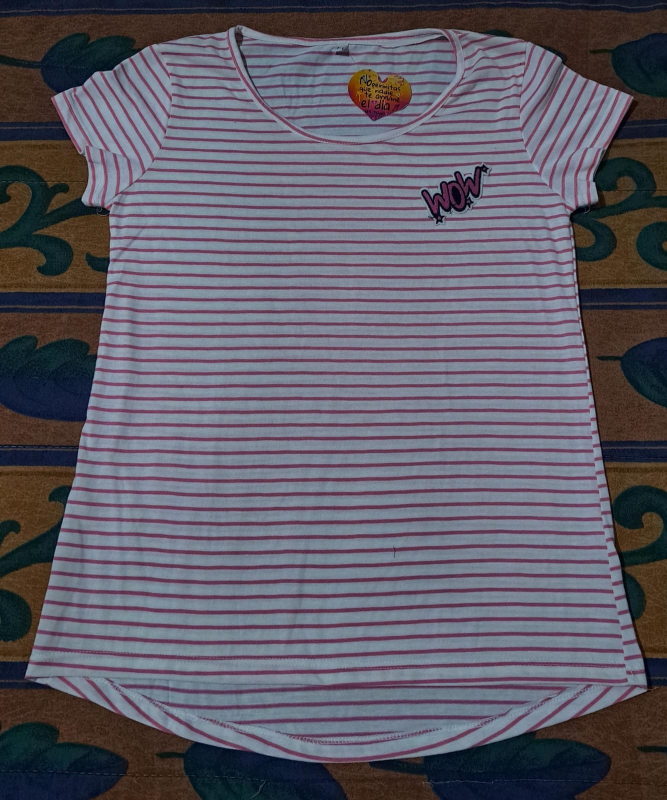Remerita rayada rosa de jersey, con detalle bordado